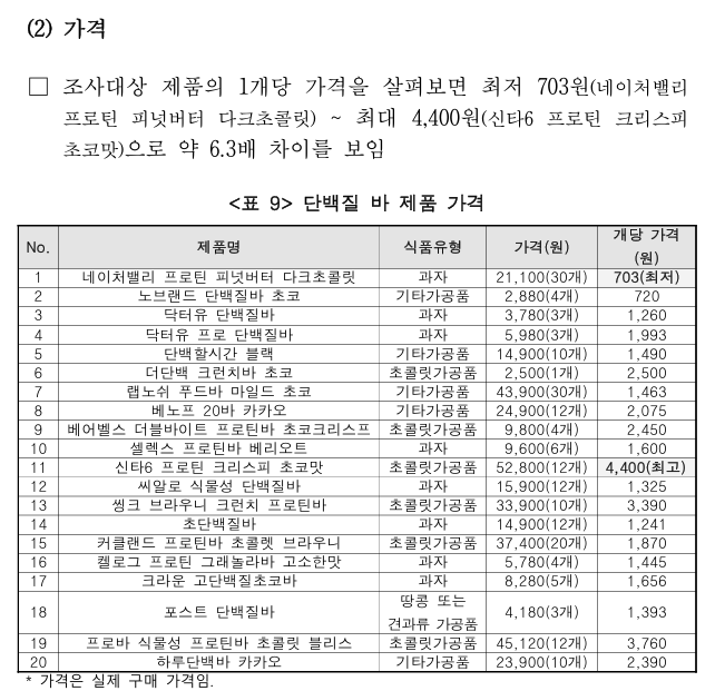 가성비 + 단백질 함량 다 챙긴 프로틴바 추천!! 20개 제품 비교 결과 (소비자원)