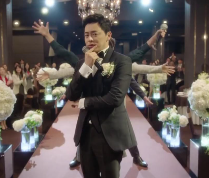 오마주해서 가볍게 춤추며 등장하는 신랑