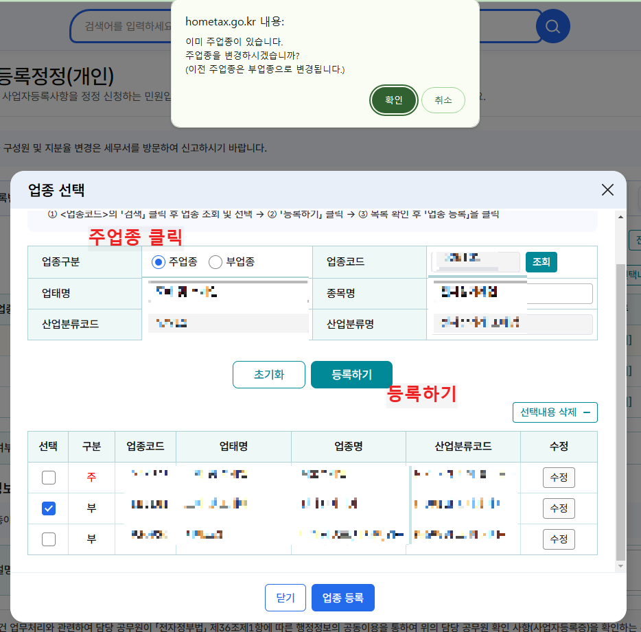 저는 기존에 등록한 부업종을 주업종으로 변경하고자 하여,