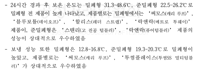 보온과 보냉에서 우수한 평가를 받았습니다.