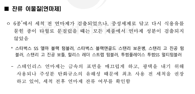 보온보냉 우수 평가에서는 보이지 않던 스타벅스가 연마제 부분에서는 보이네요 크흡