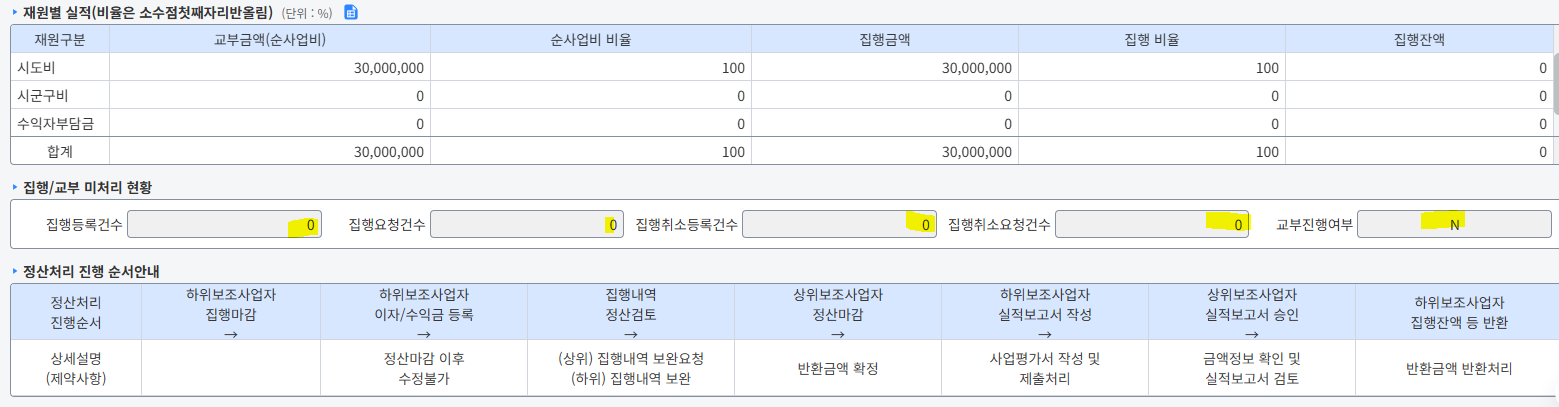 보조사업자는 사업수행 후 집행마감작업을 하고