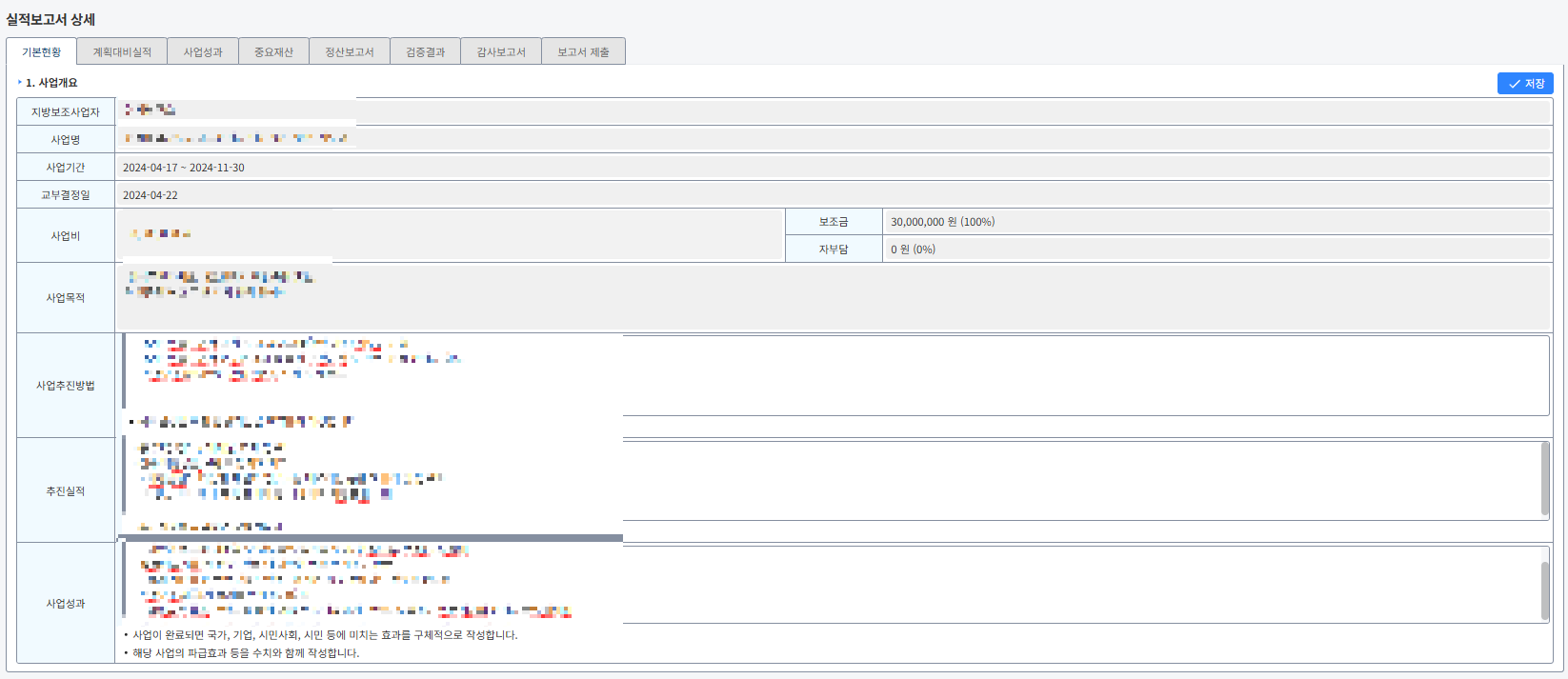 보조사업자는 실적보고서를 작성해 등록합니다.