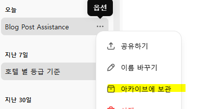ChatGpt 챗지피티 아카이브 보관하기 복구방법 : 없어진 탭 되돌리기