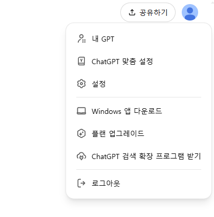 상단의 프로필 버튼을 클릭 후