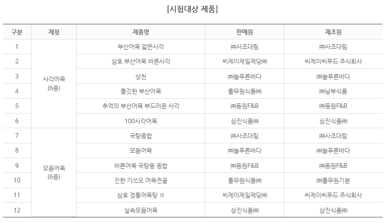 어묵 12종을 비교평가한
