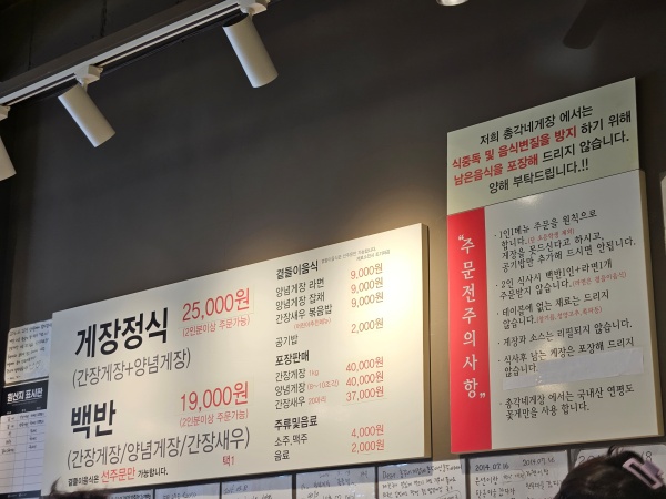 저희는 간장게장 백반 2인분과 양념게장 라면을 주문했습니다