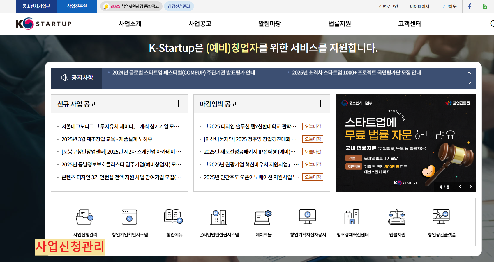 K-스타트업은 징부지원사업 신청이 가능한 플랫폼이고