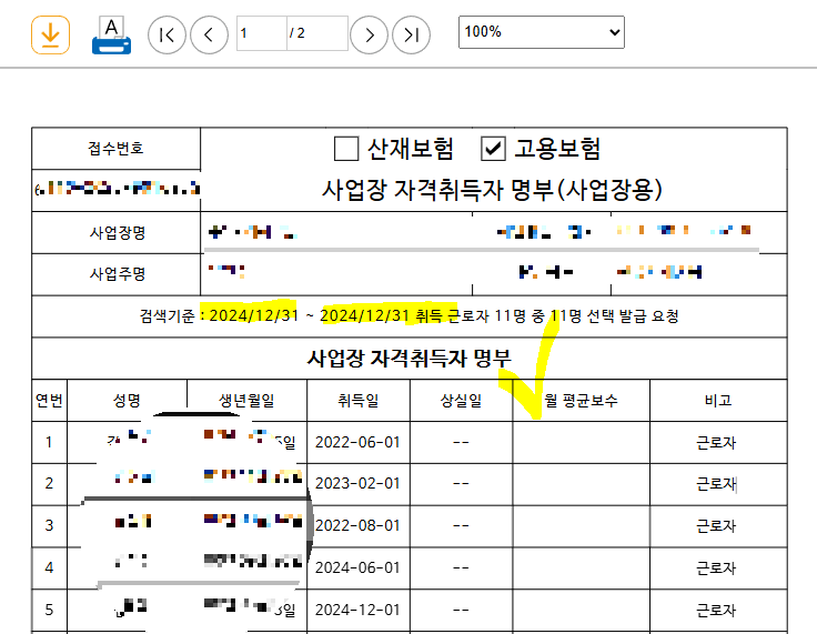 꽤나 황당한 요구로 느껴졌던 과거의 고용보험 취득자 명단도 생각보다 쉬이 가능합니다.