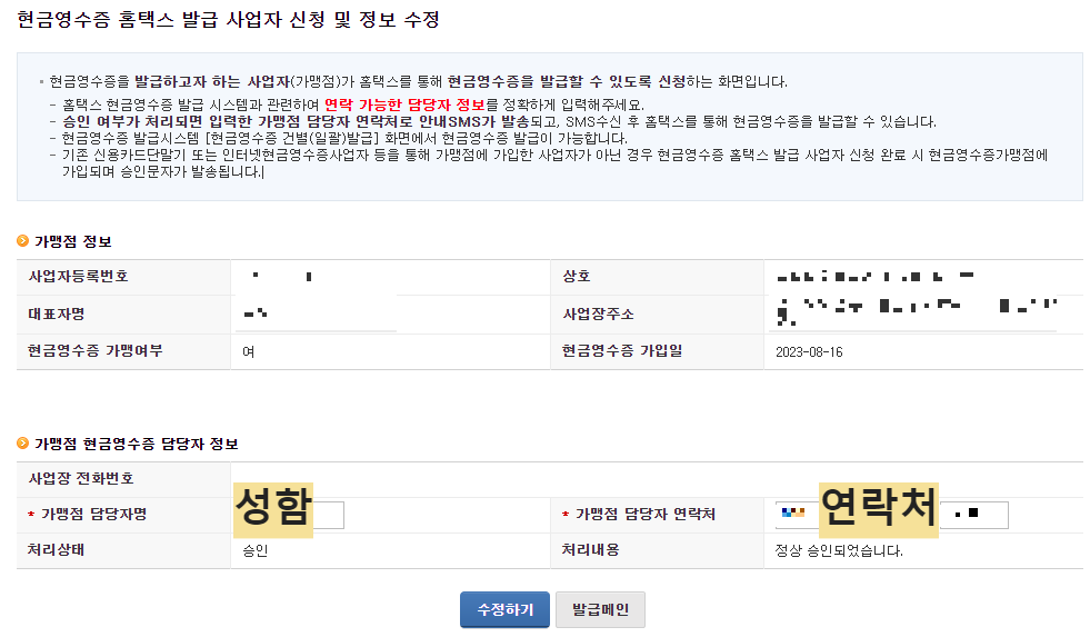 간이과세자 현금영수증 발급 사업자 신청을 한다.