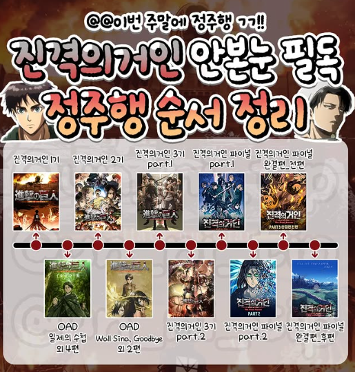 진격거 순서 딱 정리해드립니다! 진격의 거인 애니 극장판 시청 순서
