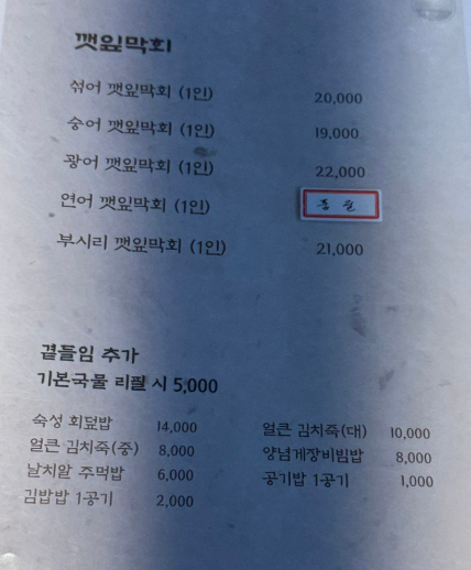 (물회 메뉴도 있으니 참고 바랍니다.)