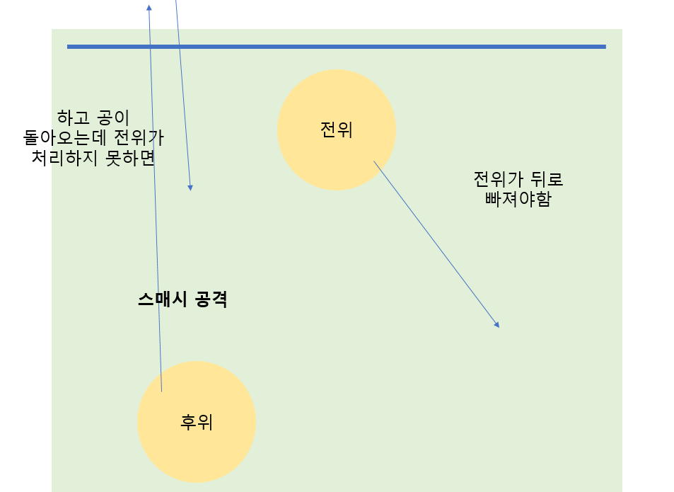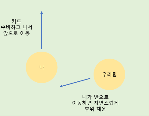 앞으로(흰 라인)까지는 앞으로 나와서 드롭에 대응 가능하도록