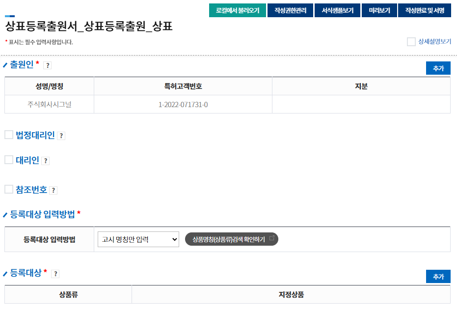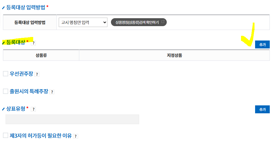 상표와 지정상품을 입력하는 것이 매우 중요