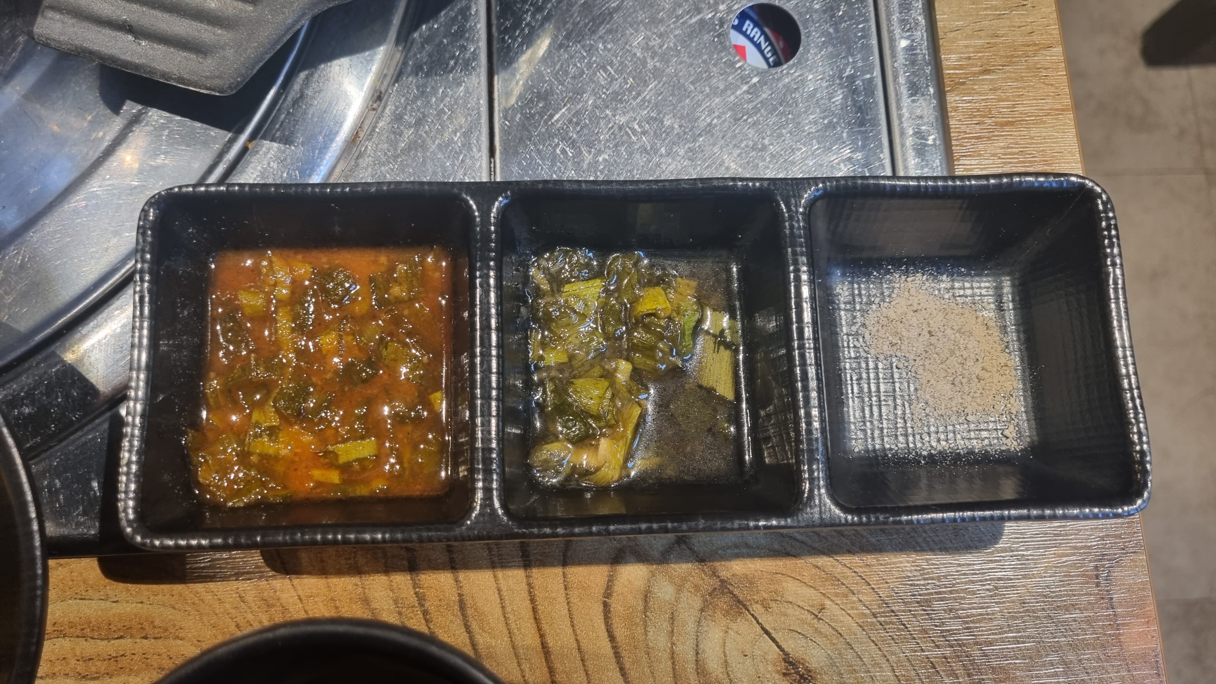 매운 소스, 간장소스, 소금인 것 같습니다.