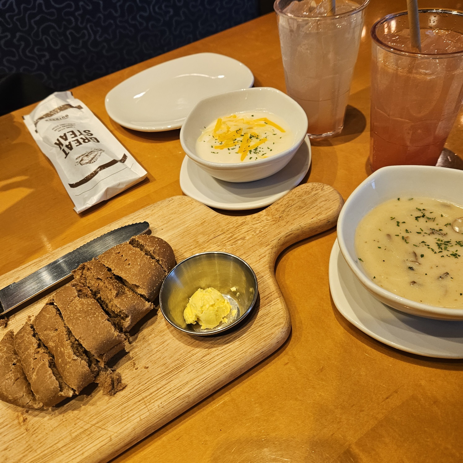 수프는 크림치즈와 양송이로 각각 시켰는데,