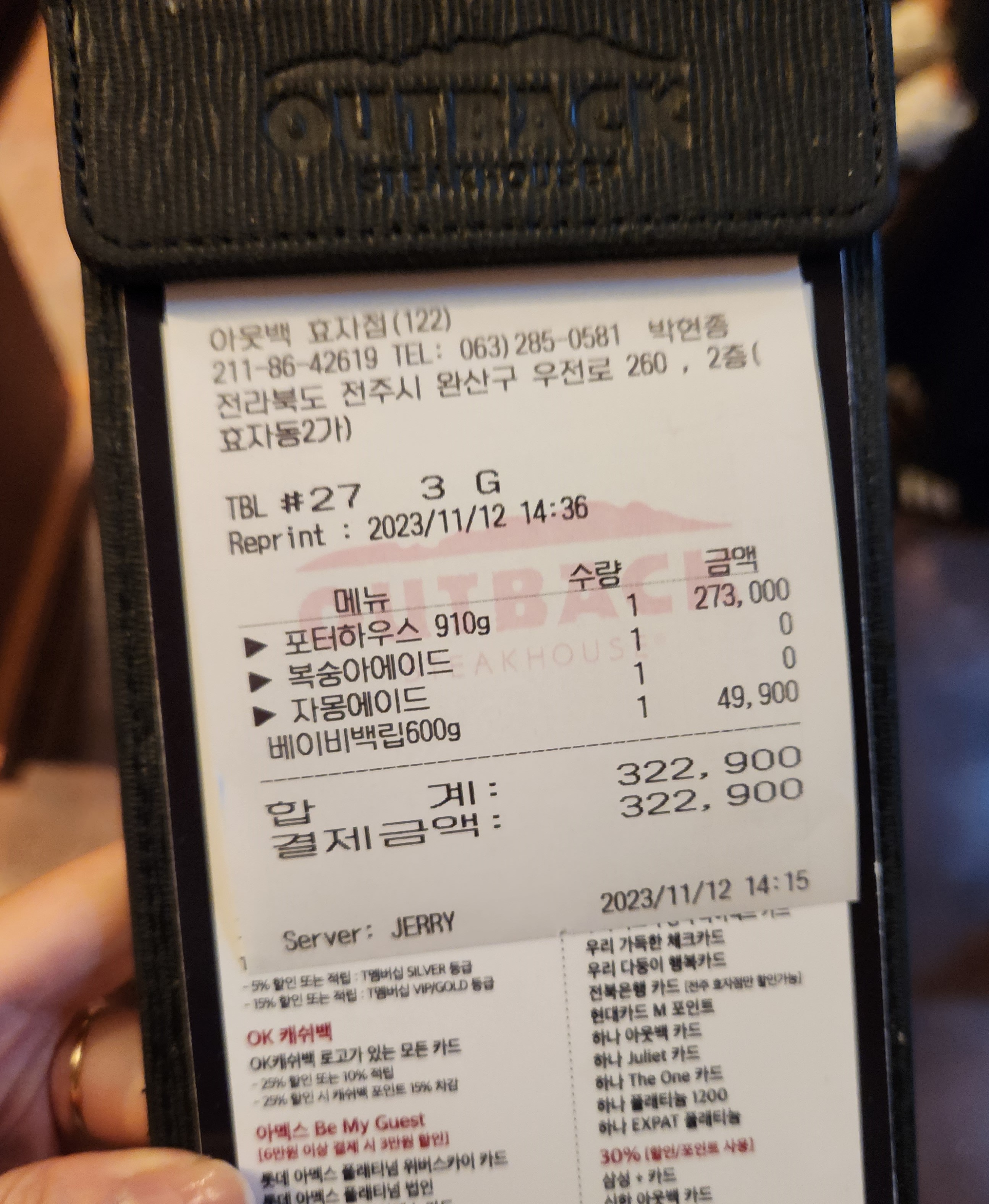 아웃백 가기 일주일 전에 제휴카드를 신규 발급받아서