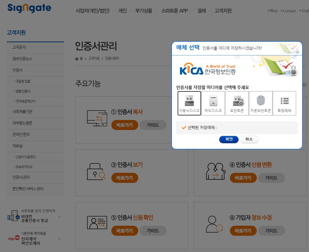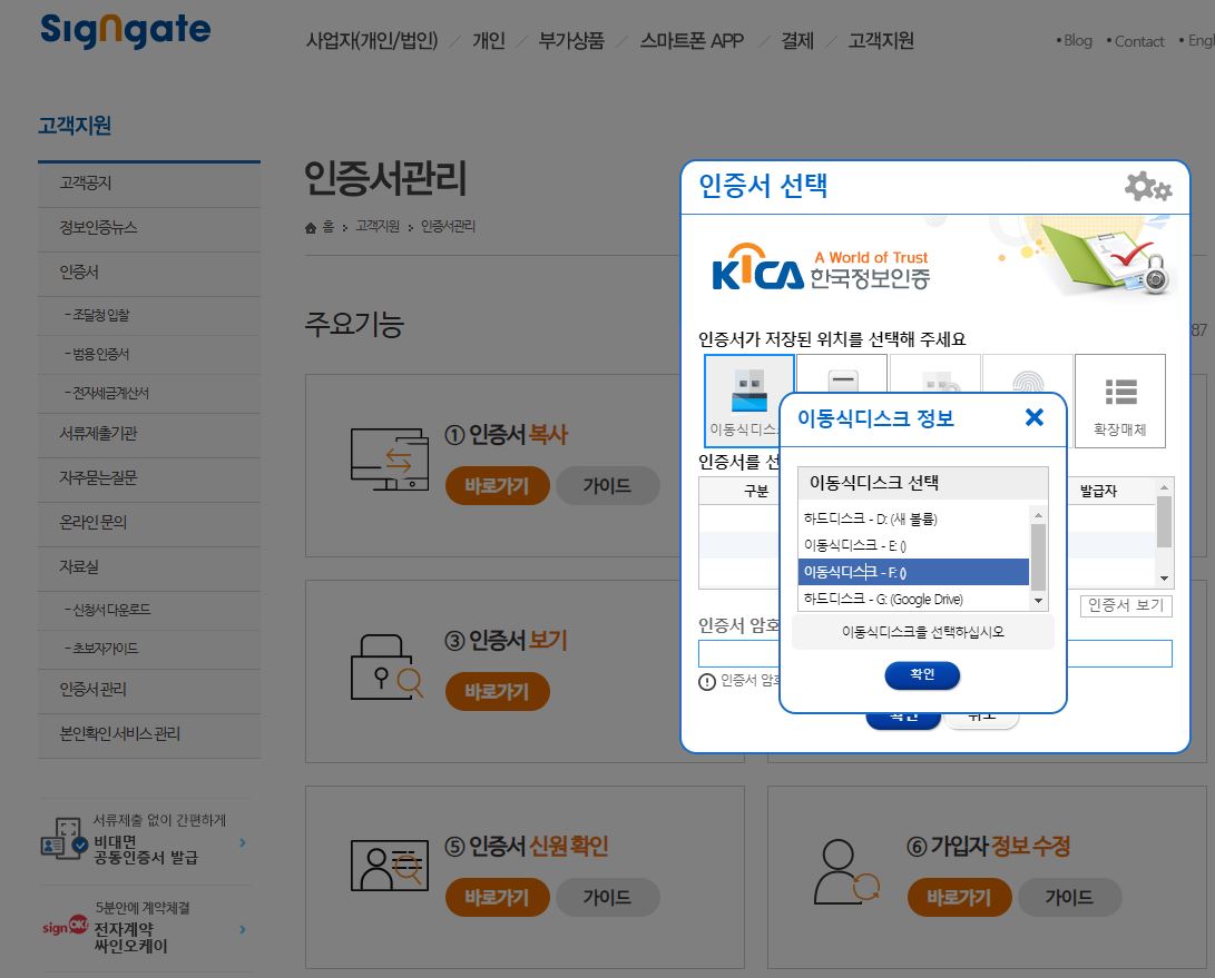 2. 한국정보인증 사이트 활용 (원하는 인증서만 옮기기)