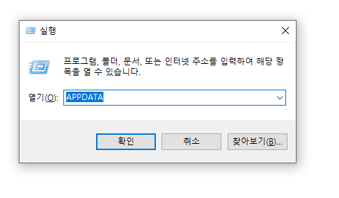 윈도우 + R키를 눌러 APPDATA를 검색해주시고