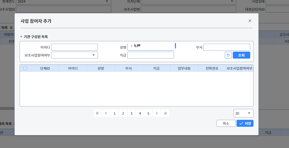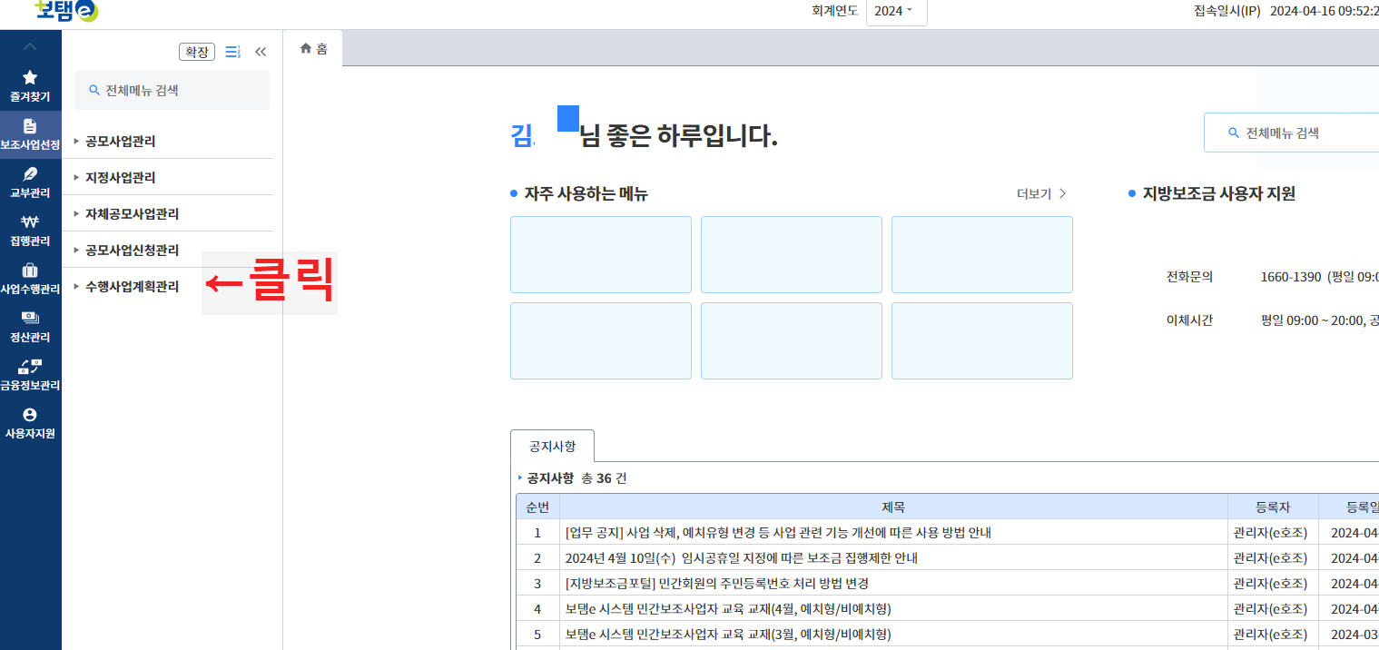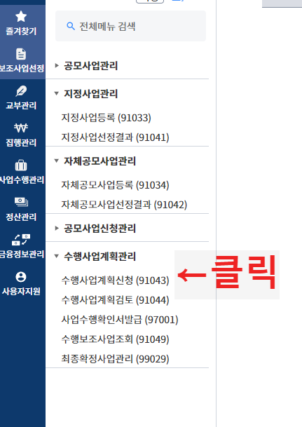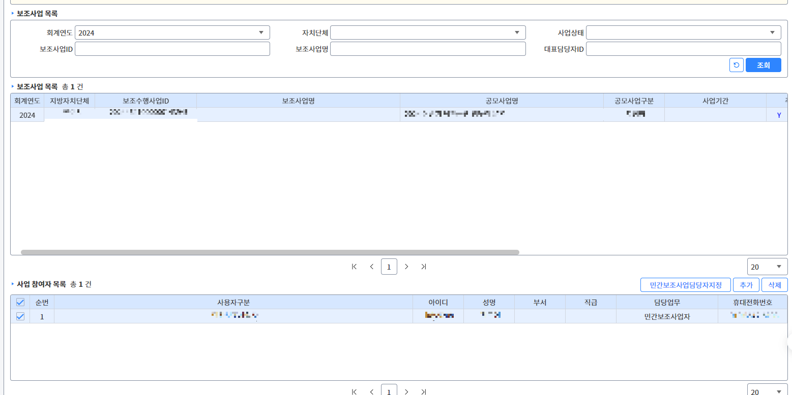 아래와 같이 보조사업목록에서 조회할 수 있습니다.
